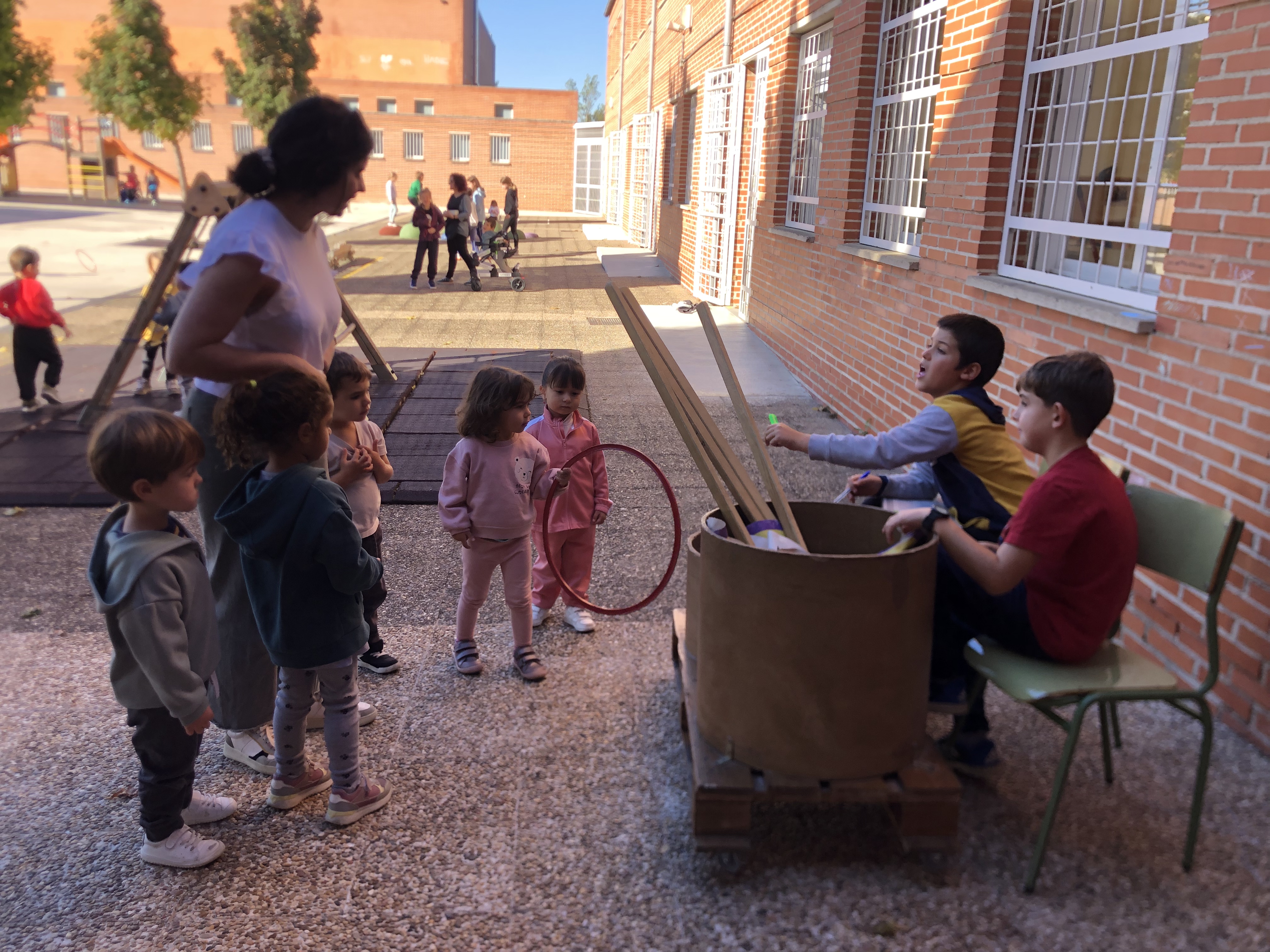 Todos los días el alumnado de 5º y 6º de primaria sacamos un carro a la hora del patio lleno de juegos.